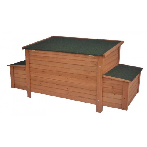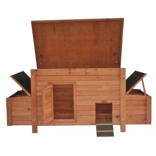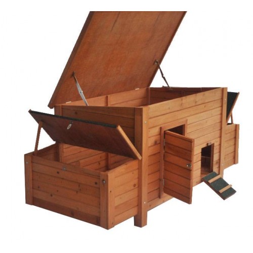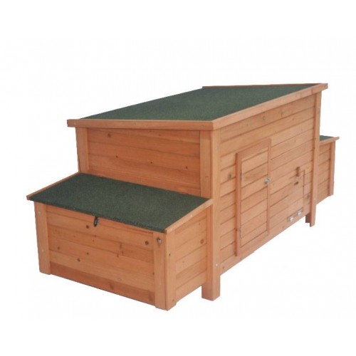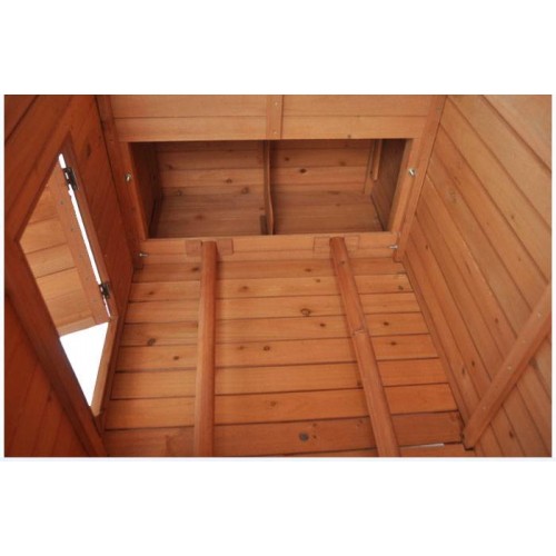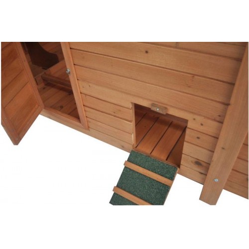 This chicken house with ramp & large living house & 4 nesting boxes. It is constructed by high quality solid Fir wood. All timber are T&G plained to aviod splintering. All joints are mortise and tenon. 2 x access doors for easily catch your pets.