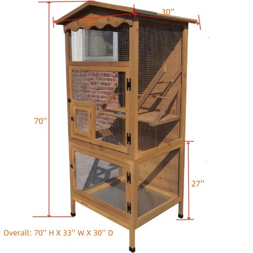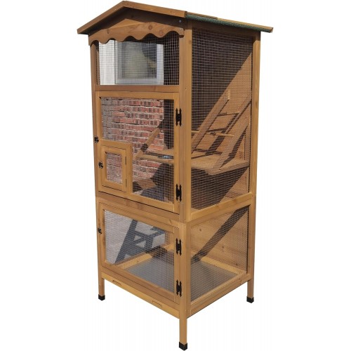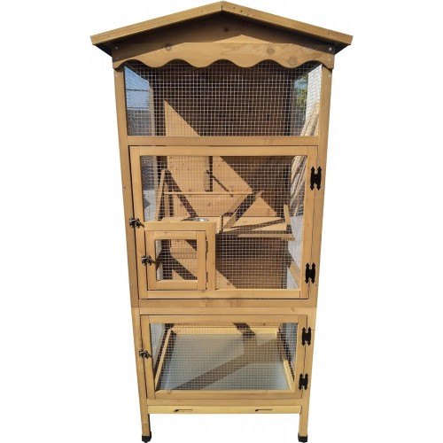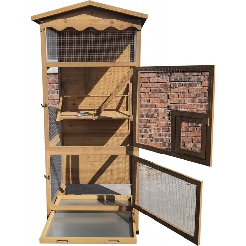 New 70” Large Outdoor Bird Aviary Weatherproof Wooden Indoor Bird Cage Easy Pull Out Clean Tray Asphalt Roof for Finches Doves Parrots Parakeets Canaries Cockatoos Lovebirds Pigeons