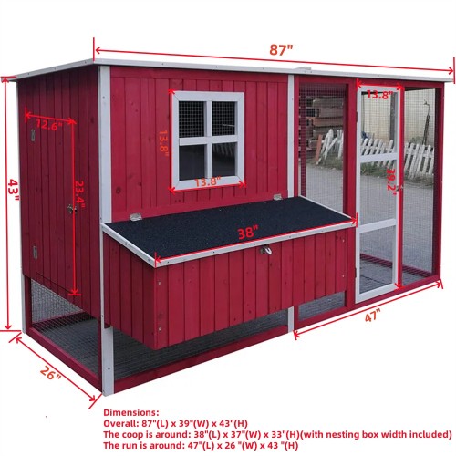 87" Wood Chicken Coop Backyard Hen House 4-8 Chickens Nesting Box & Run New