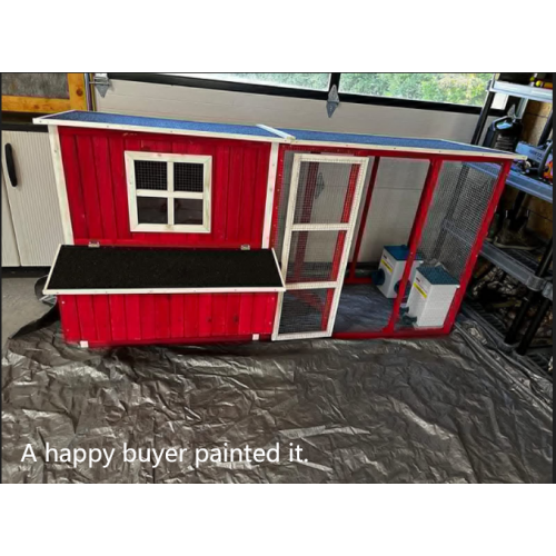 All timber are T&G plained to avoid splintering. This house is designed with a living room for sleeping, and a pen downstairs. All joints are mortise and tenon. 2 x access doors on both levels. The Spray wire is solid and Non-toxic in case your animals like to chew.
